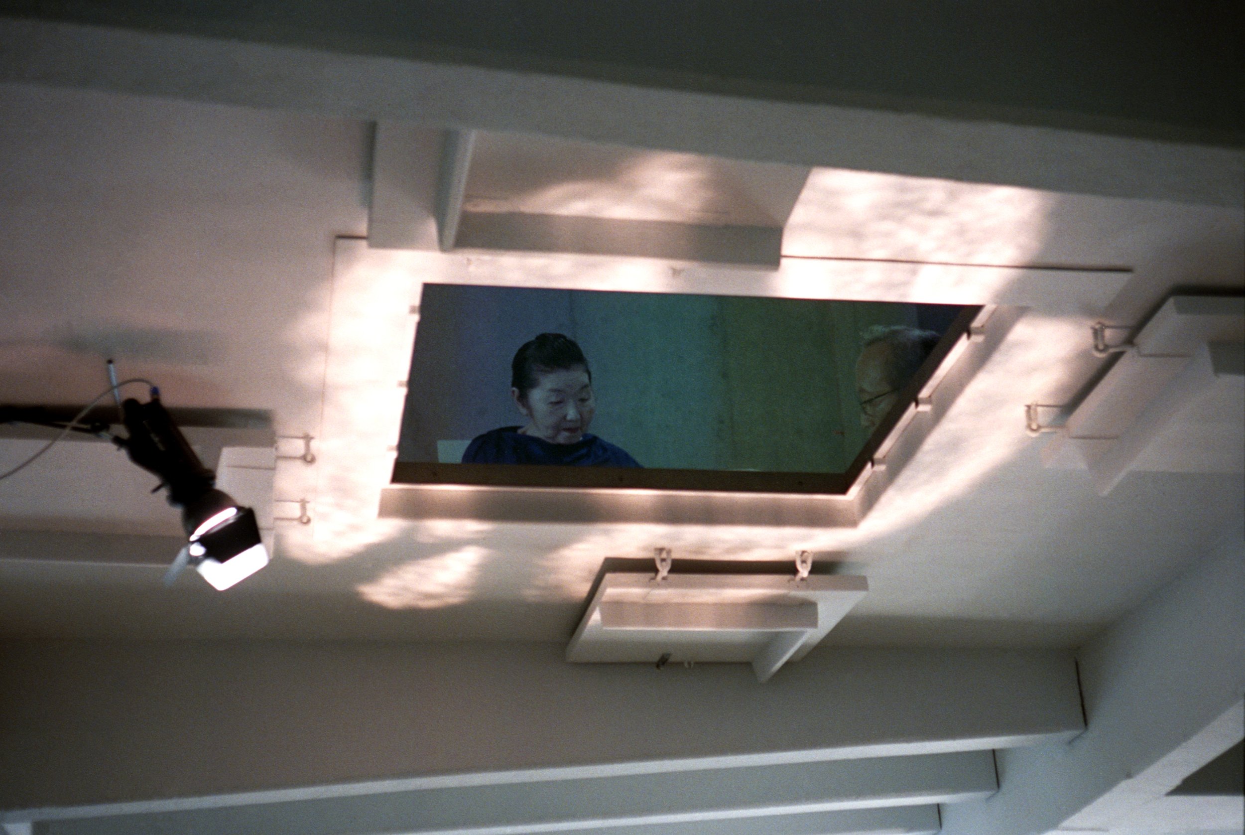 Our guiding principle was that they would eat “as themselves” before the camera. Yet for those without professional acting experience, being surrounded by cameras, lighting, and microphones while delivering prescribed lines was, by nature, an unnatural circumstance. Untrained in reproducing directed movements, they instead revealed to the camera the tremor of an eye muscle or the stiffness of a joint. The work is neither documentary nor fiction, but a deliberately constructed in-between space. Speech is not acting, yet the body remains tense—this subtle condition, the “congealed body,” forms the work’s central motif.